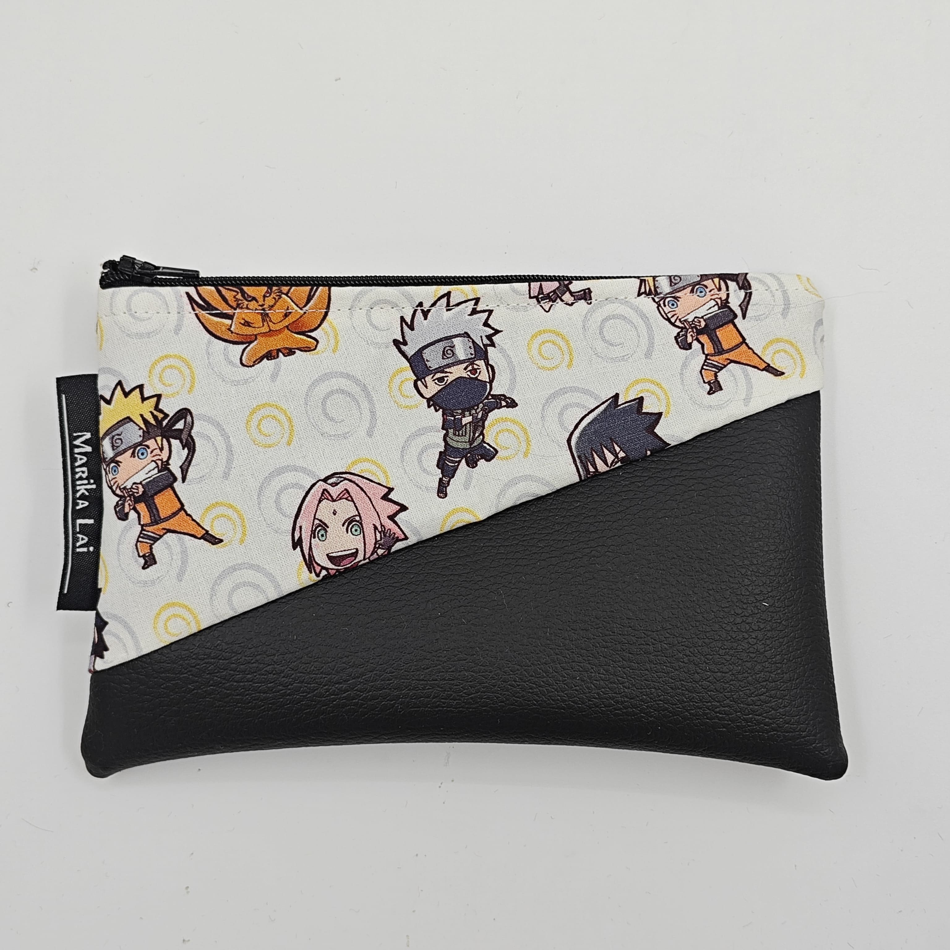 Pochette in cotone e similpelle foderata in raso di poliestere nero, misura 20×15 cm